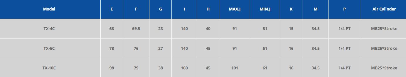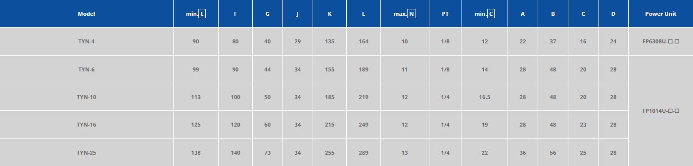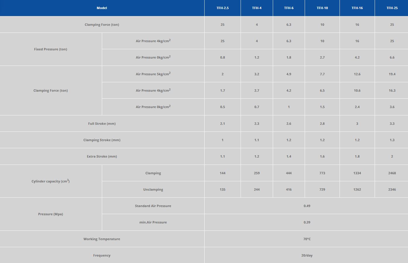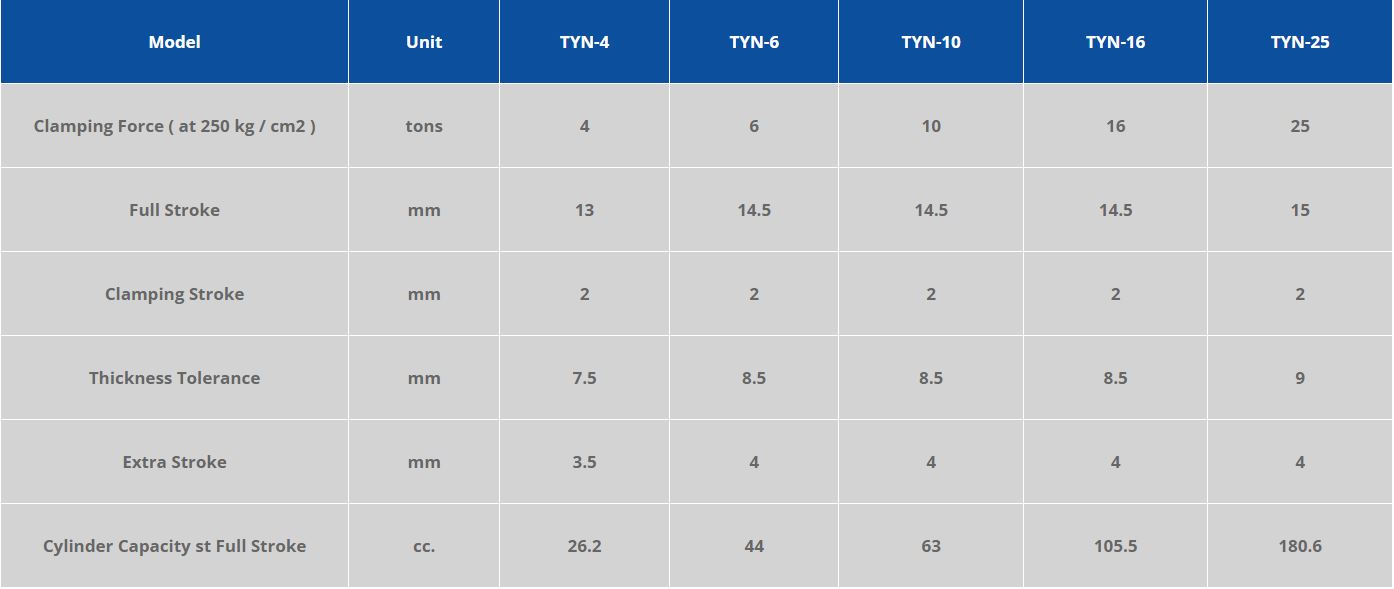 * Extra stroke is the difference between full stroke and clamping stroke with extra space allowed for safe operation.