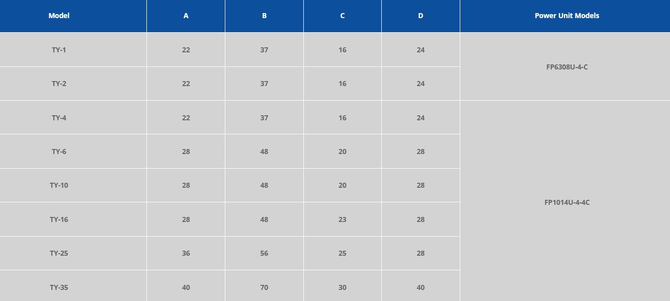 For a closer look at the exact dimensions of the TY series die clamps please see the following diagram and table.