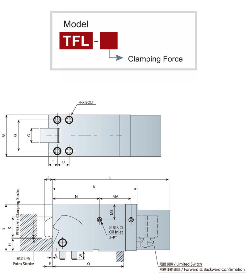 * Extra stroke is the difference between full stroke and clamping stroke with extra space allowed for safe operation.