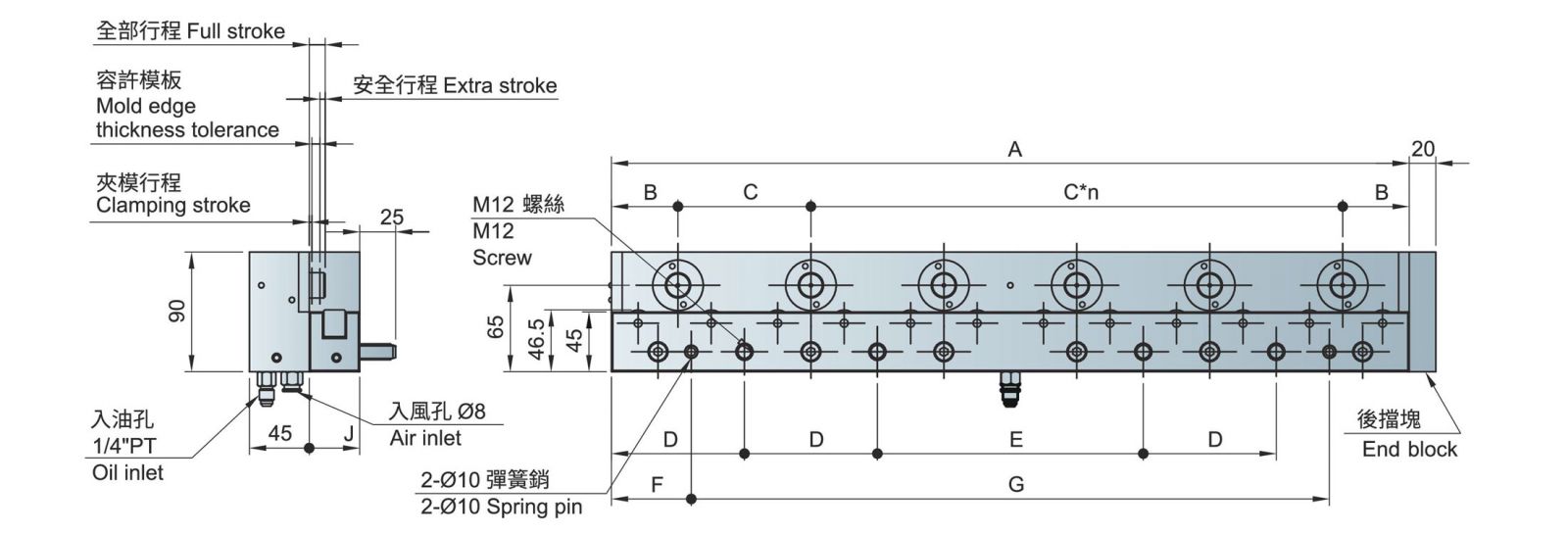 * Before purchasing, please verify if the mold edge thickness (h) and T-slot (A.B.C.D) have standard or special dimensions.