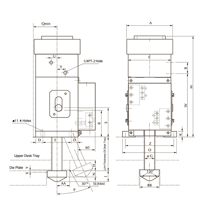 * Die shoe thickness(h) Classify : 25?30?35?40?45?50?55?60mm.